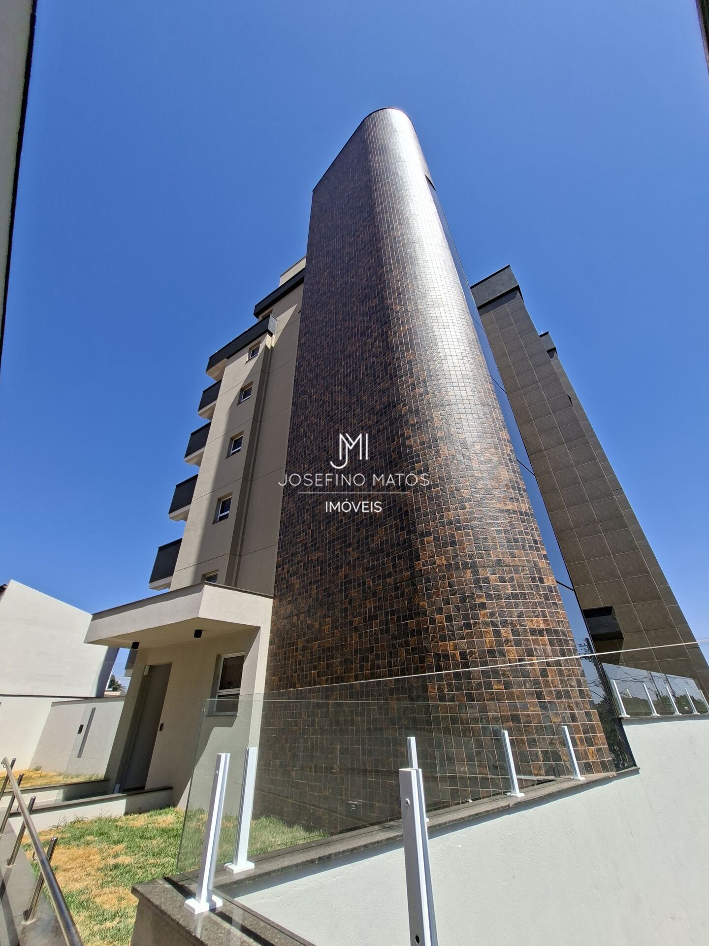 Prédio novo com apenas 12 unidades, fachada frontal revestida com detalhe em vidro.