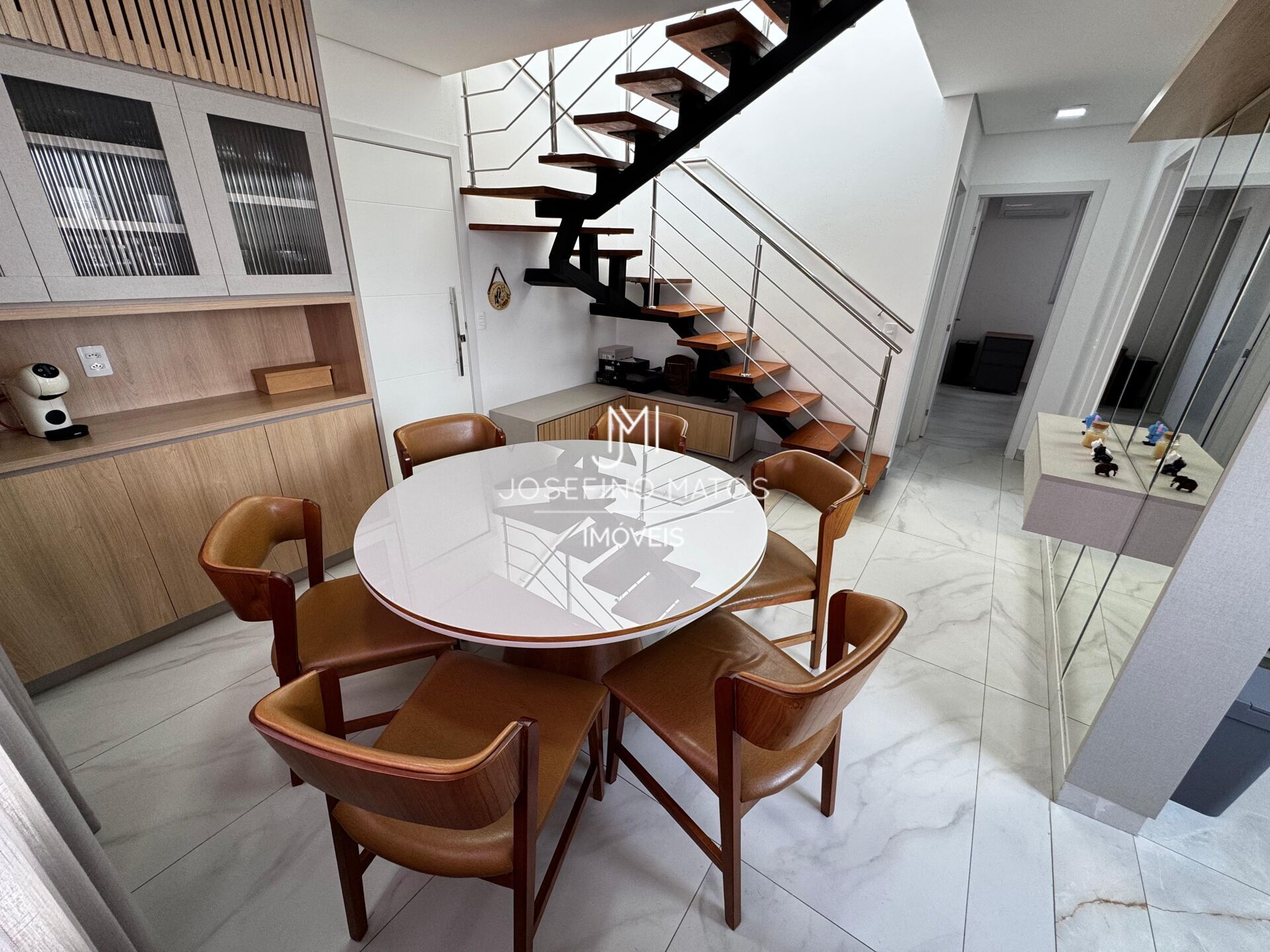 Cozinha com bancadas em granito, Escada em madeira.