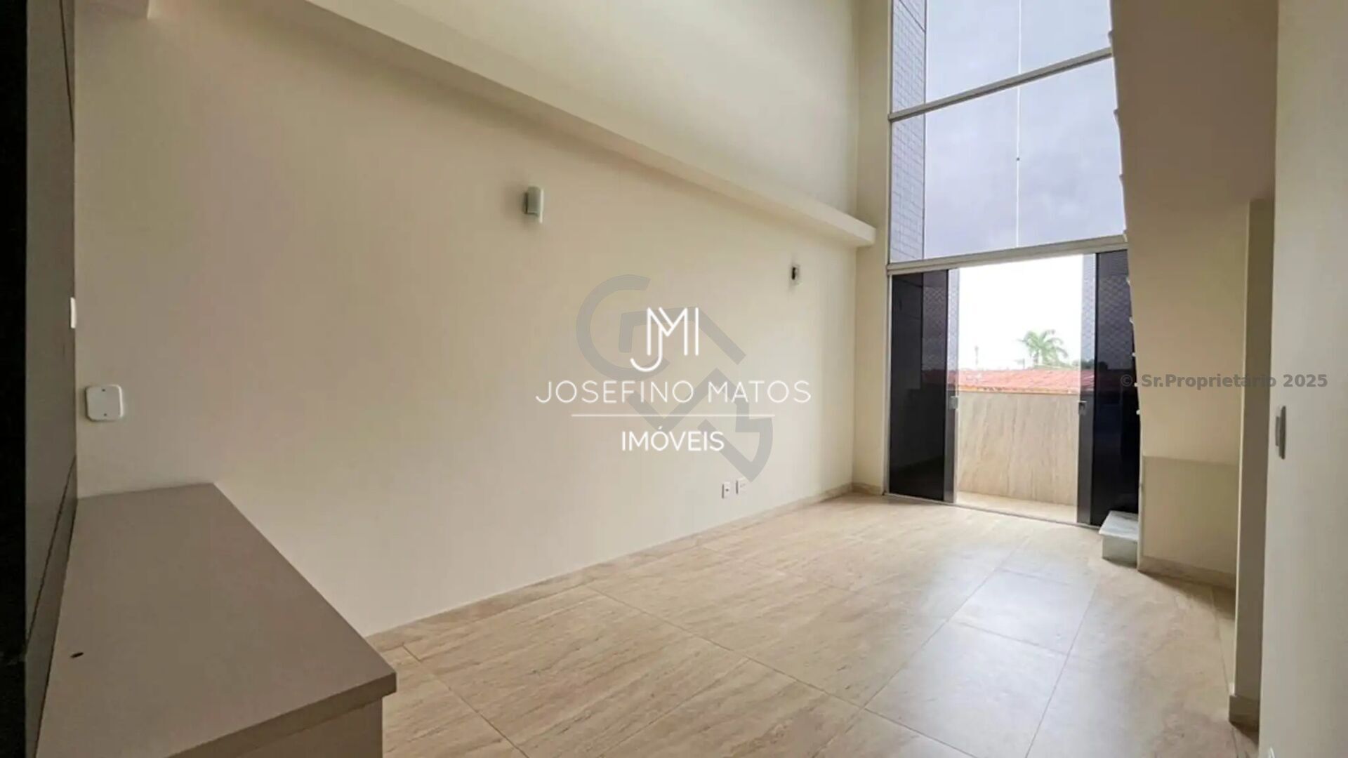 1 Sala ampla para dois ambientes, com piso em porcelanato e varanda