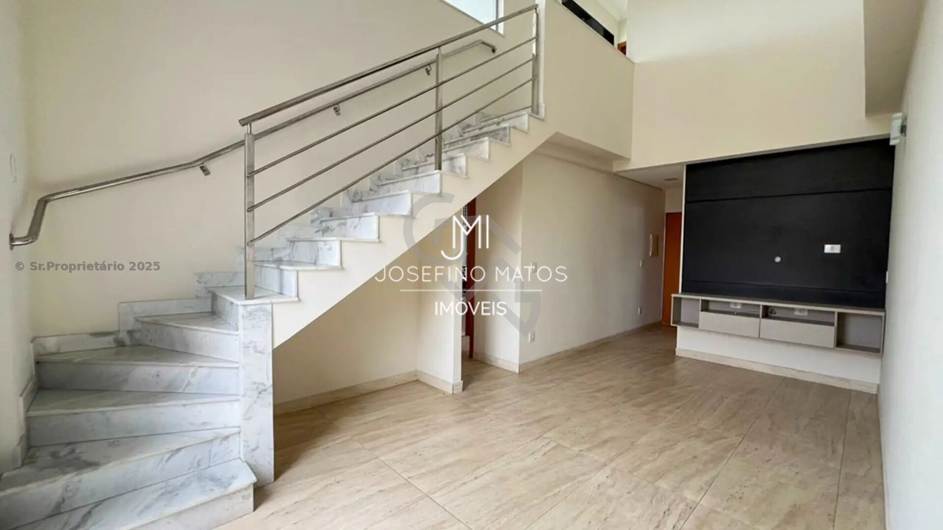 Cobertura de aproximadamente 144m² de área total interna, sendo 108 de área no piso inferior e 36 no piso superior.